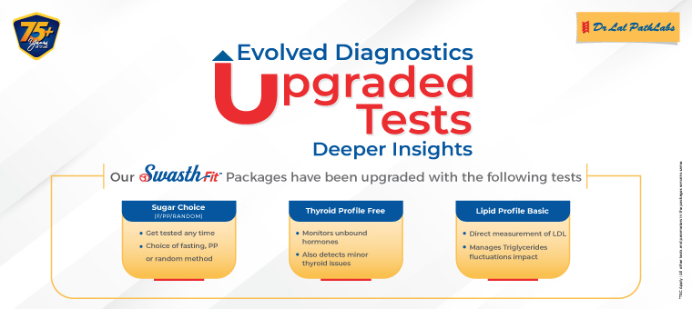 Dr Lal PathLabs, India's leading diagnostic chain with 75 years of expertise, offers 5000+ tests, including CBC, Blood Sugar, HbA1c, Kidney/Liver Function, Thyroid, Lipid, Vitamin D/B12, Urine Culture, Allergy tests, and full-body packages. With 150+ hospital partnerships, 280+ labs, 6000+ patient service centers, and 11,000+ pickup points, it ensures accessible, affordable, timely, and high-quality services.Our range of health packages - Swasthfit provides age-specific and advanced panels for non-communicable diseases like diabetes and heart ailments.